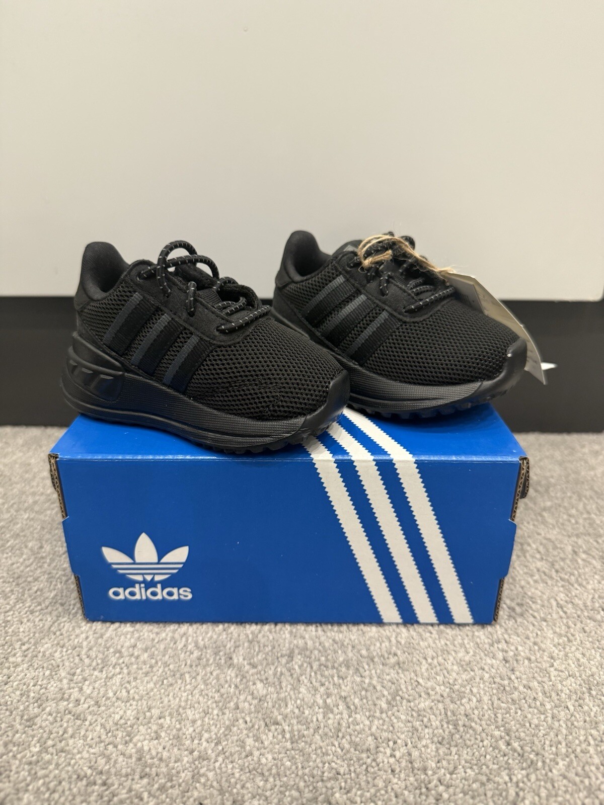 Get your little one ready for their next adventure with these adidas LA Trainer Lite shoes in black. Designed for boys with a UK shoe size of 3, these sneakers are perfect for everyday wear. The shoes are made with high-quality materials to ensure durability and comfort. The sleek black colour and stylish design make these trainers a must-have for any young fashionista. Whether they're playing sports or running errands, these shoes will keep them comfortable and looking great. Don't miss out on this opportunity to give your child the perfect combination of style and comfort.