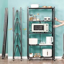 Estantería plegable pesada de almacenamiento de metal con ruedas estantes de 5 niveles