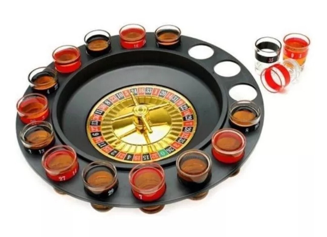 JUEGO DE MESA PARA REUNIONES Y FIESTAS. RECOMENDADO A PARTIR DE 18 AÑOS Máximo 16 PARTICIPANTES. LAS IMAGENES PUEDEN SER ILUSTRATIVAS (los colores pueden variar en su tono) El diámetro del juego es de 30 CM La altura 7 CM Los vasos son de vidrio.