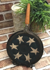 PANTALLA PROTECTORA CONTRA SALPICADURAS DE METAL RÚSTICO PRIMITIVO EE. UU. CON MANGO DE MADERA Y SOPORTE DE ESTRELLAS